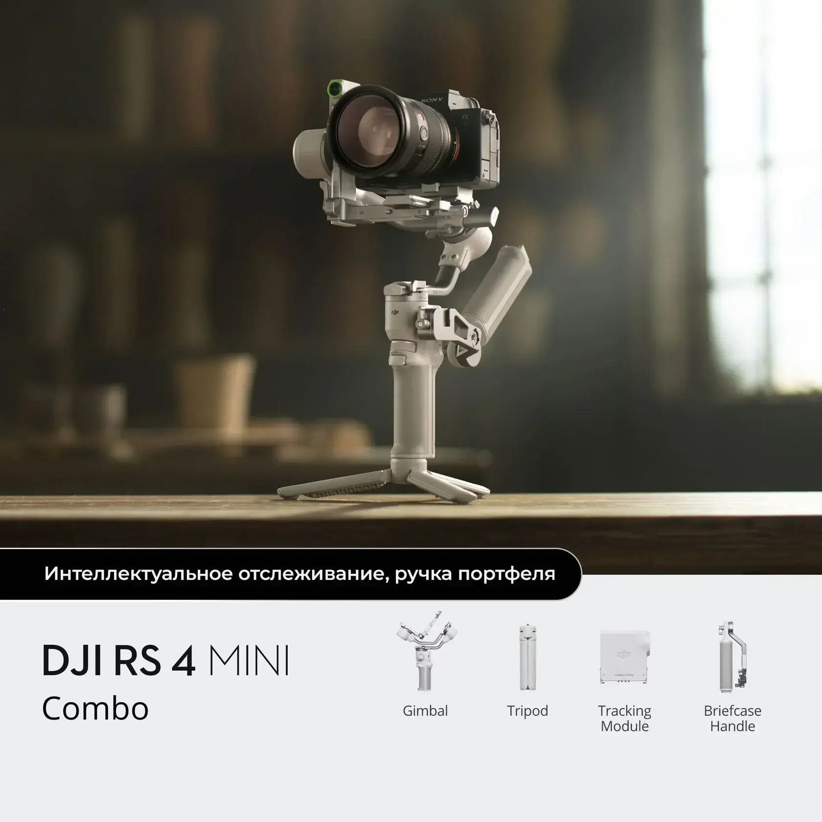 • Стабилизатор DJI RS 4 Mini Combo – совершенно новый компактный и легкий стабилизатор для создателей контента. Он оборудован автоматической блокировкой осей, интеллектуальным отслеживанием и композицией, улучшенной балансировкой Teflon™ и встроенной вертикальной съемкой третьего поколения. DJI RS 4 Mini предоставляет возможность создателям контента и независимым коммерческим видеооператорам комфортно и с минимумом усилий вести более эффективную и продолжительную съемку.